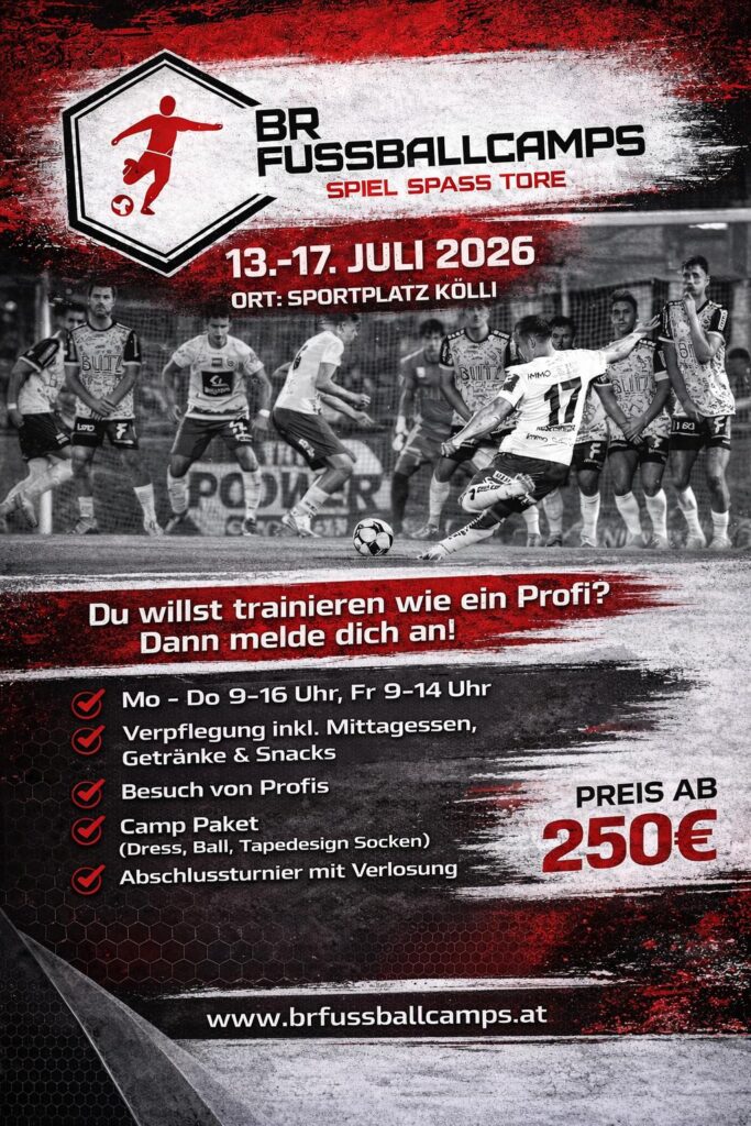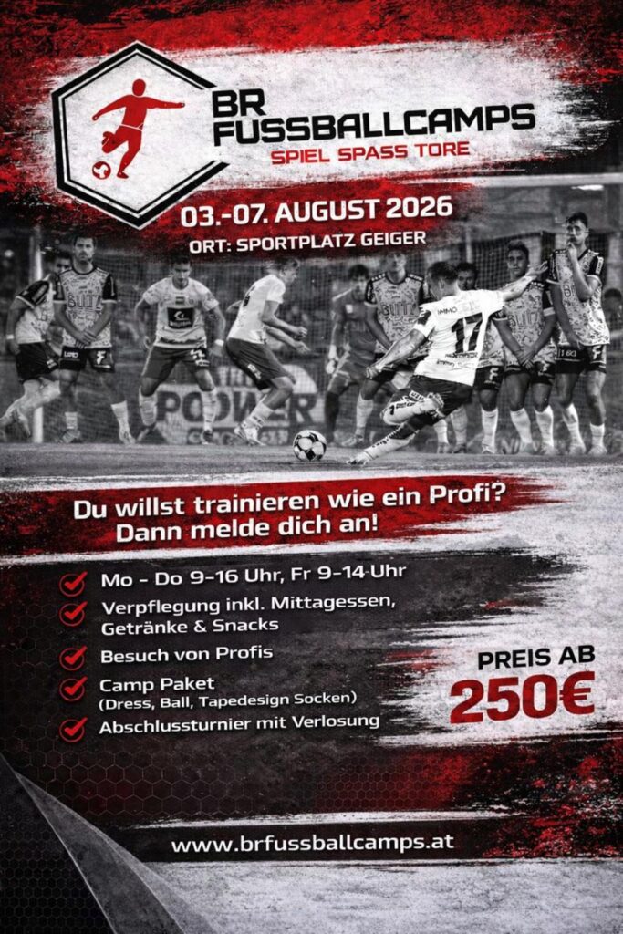 Unsere Fußballcamps bieten Kindern eine professionelle, altersgerechte Trainingswoche voller Spaß, Bewegung und Teamgeist. In 9 abwechslungsreichen Trainingseinheiten werden Technik, Koordination und Spielverständnis gezielt gefördert – immer mit Freude am Fußball. Spannende Spielformen, Wettbewerbe, ein Abschlussturnier mit Verlosung sowie Besuche und Challenges mit Fußballprofis sorgen für besondere Highlights.